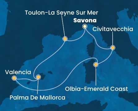 Az útvonal következő állomása a Szardínia észak-keleti részén, a híres Smaragd-part mentén fekvő kikötőváros, melynek természeti szépsége rabul ejti a látogatót. A városban és környéken töltött idő méltó része ennek az élményekben gazdag hajóútnak.