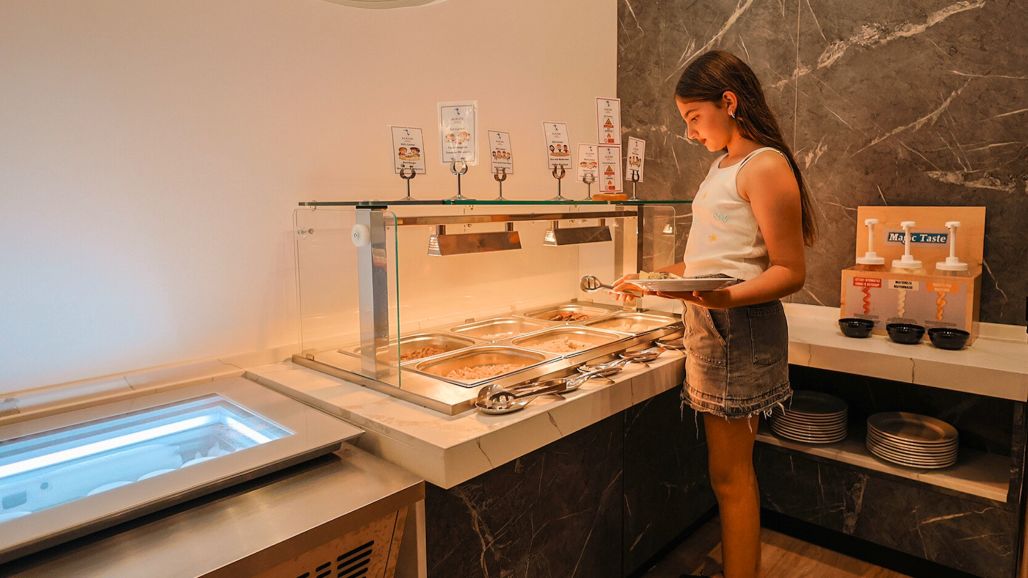 • Medence napozóágyakkal és napernyőkkel, gyermekmedence, beltéri medence, strandtörölköző a medencénél ingyenesen biztosított, főétterem, több tematikus a’la carte étterem (olasz, sushi, stone grill, burger bistro, taverna), bárok, swim-up bár, nappali és esti animációs programok, miniklub, minimozi, játszótér, teniszpályák, minigolf, asztalitenisz, kosárlabda, vízi aerobik, WiFi a szálloda teljes területén.