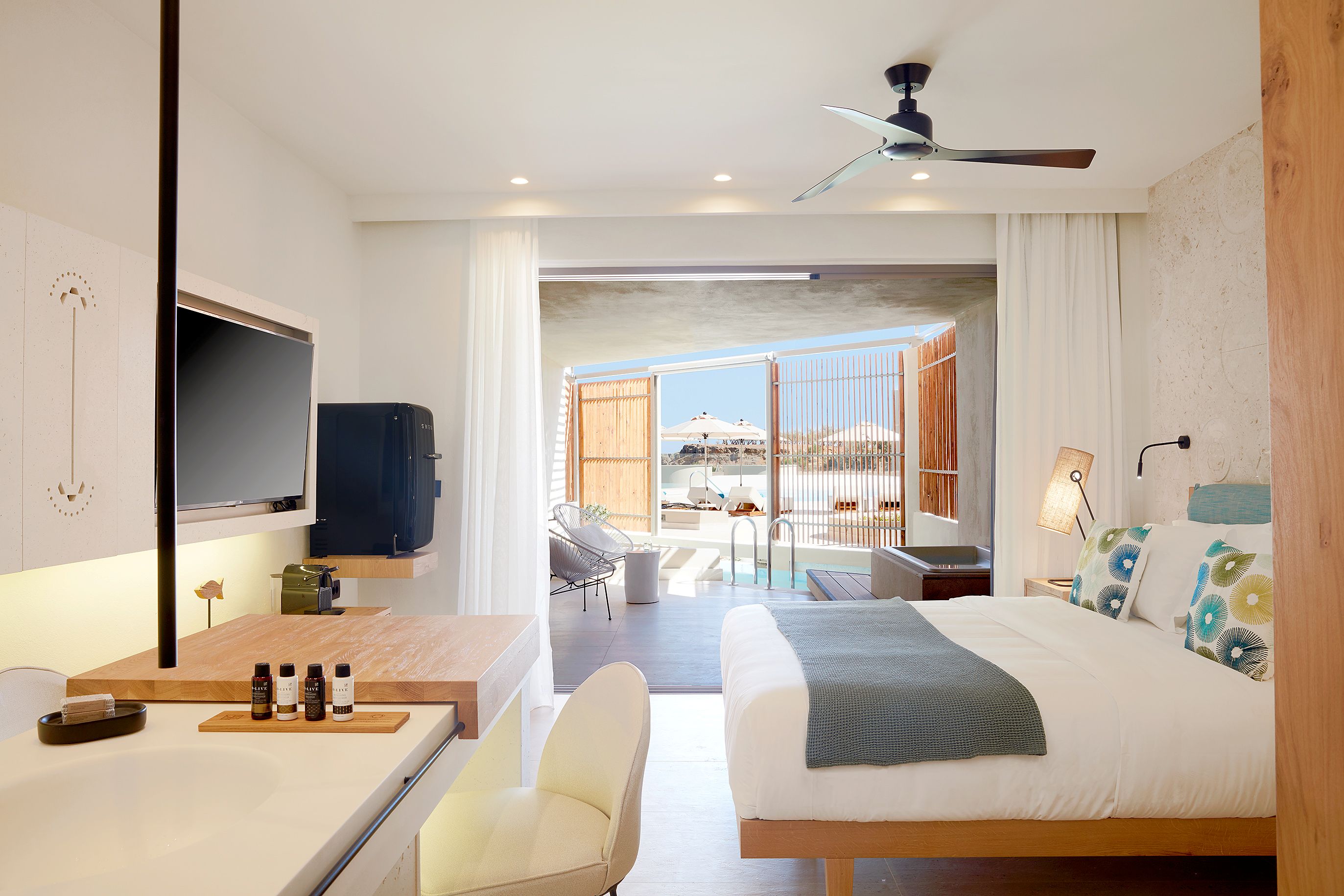 - 2 ágyas front tengerre néző, privát medencés „Pure Haven” szobáinak felszereltsége megegyezik az „Upbeat Retreat” szobákéval, de itt merülő medence helyett, saját privát medence jár a szobához.