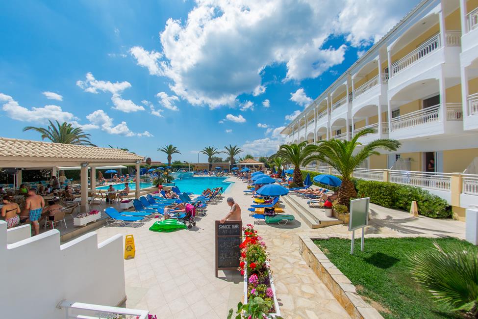 Laganas településen, közvetlenül a homokos tengerpart mellett épült, modern, háromszintes, lifttel rendelkező főépületből és kétszintes melléképületekből álló, 249 szobás épületegyüttes.