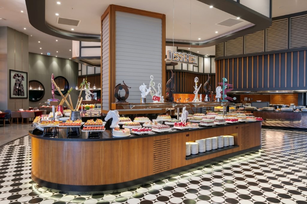 - Ultra All Inclsuive: Reggeli, ebéd és vacsora büférendszerben, késői reggeli, éjszakai snackek (01:00-07:00), napközbeni snackek, döner, kumpir, fánk, gözleme, gofri, fagylalt meghatározott időpontokban, kávé/tea és sütemények, helyi és néhány import alkoholos és alkoholmentes ital 24 órában, naponta üdítőkkel, vízzel és sörrel feltöltött minibár, 4 a’la carte étterem (török, távol-keleti, olasz és hal a tartózkodás során 1 alkalommal, előzetes asztalfoglalással) .