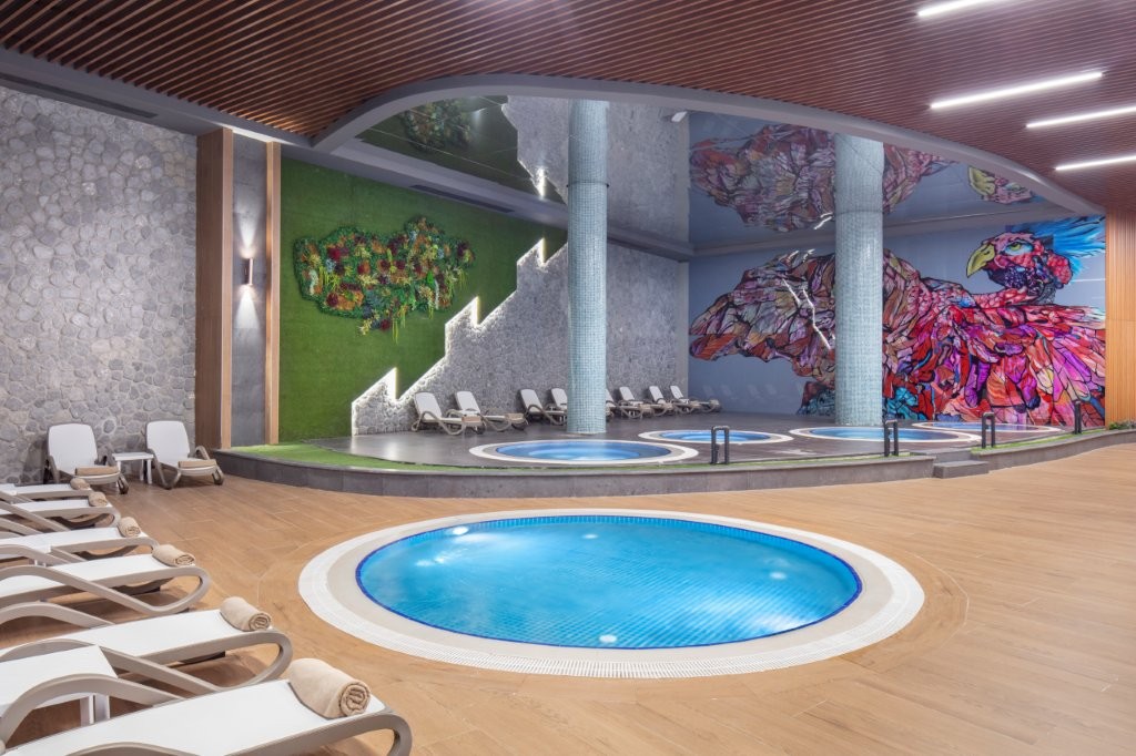 - Medence napozóágyakkal és napernyőkkel, felnőtt relax medence, beltéri medence, 5 felnőttcsúszda, gyerek aquapark, nappali és esti animációs programok, showműsorok, miniklub (4-12 éveseknek), játszótér, minigolf, fitneszterem, törökfürdő, szauna, gőzfürdő.