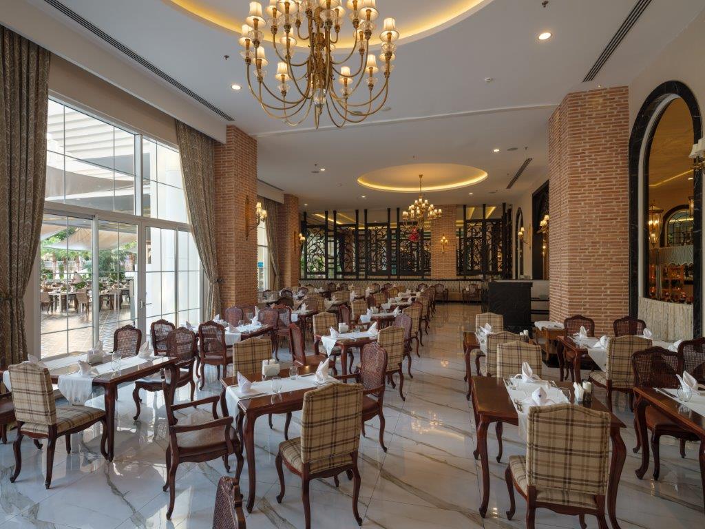 - Ultra all inclusive: reggeli, ebéd és vacsora büférendszerben, kései reggeli, gyermekmenü a miniklubban ebédnél és vacsoránál, délutáni snackek, éjjeli snackek (00:00-07:00), döner, gözleme, kávé/tea/ sütemények, helyi és néhány import alkoholos és alkoholmentes ital (napi 24 órában), török kávé, energiaital, frissen facsart narancslé, minibár (üdítők, víz és sör; naponta feltöltve).